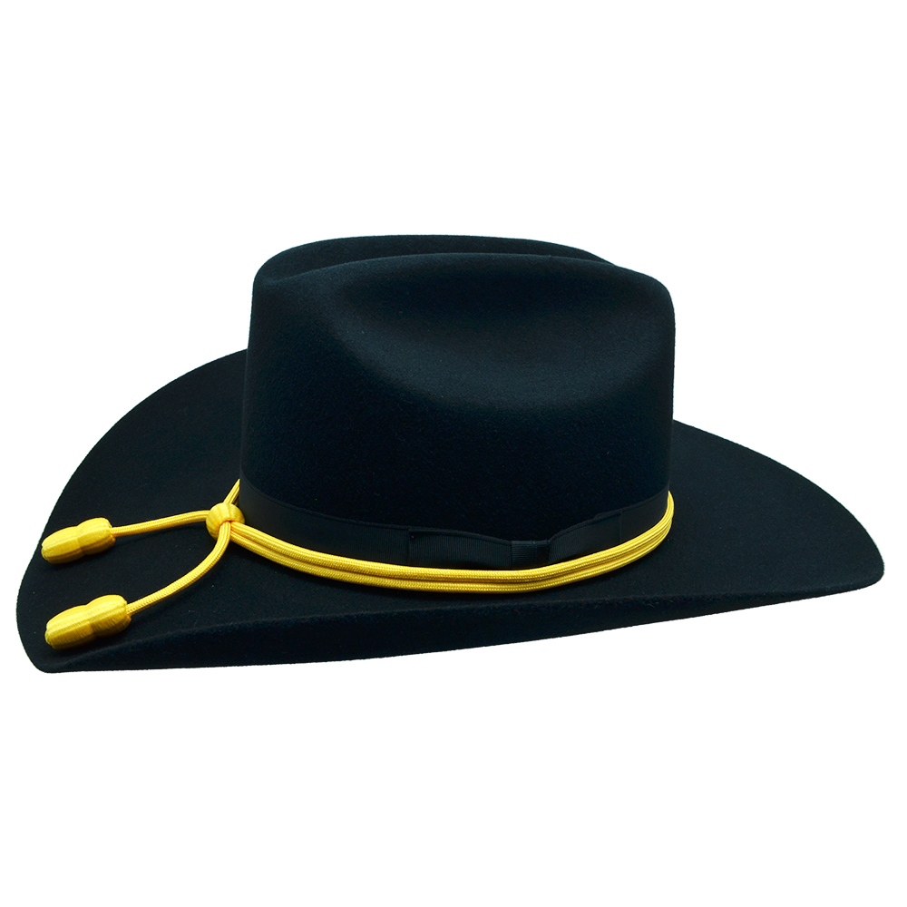 Note: The 4X cavalry Hat shown in the picture comes with a 4" boss raw edge, and a 4 1/2" cattleman crown, 1" grosgrain band, enlisted acorn band (522) , and a black 3 piece strap. Miller Hats has created a large selection of cavalry hats suitable for each customer. The specs used in the design of the Miller Cavalry Hat have given Miller Hats the niche over other sellers of Cavalry Hats. Miller hats has created a durable, unique and affordable hat for every cavalry soldier or any private citizen that would like to carry on the tradition. Our cavalry hats are in stock ready to ship, we ship to AK, HI, APO, and International countries. Click here to watch a video of the famous Lt. Colonel Kilgore Hat. Click here to learn more about cavalry hats.